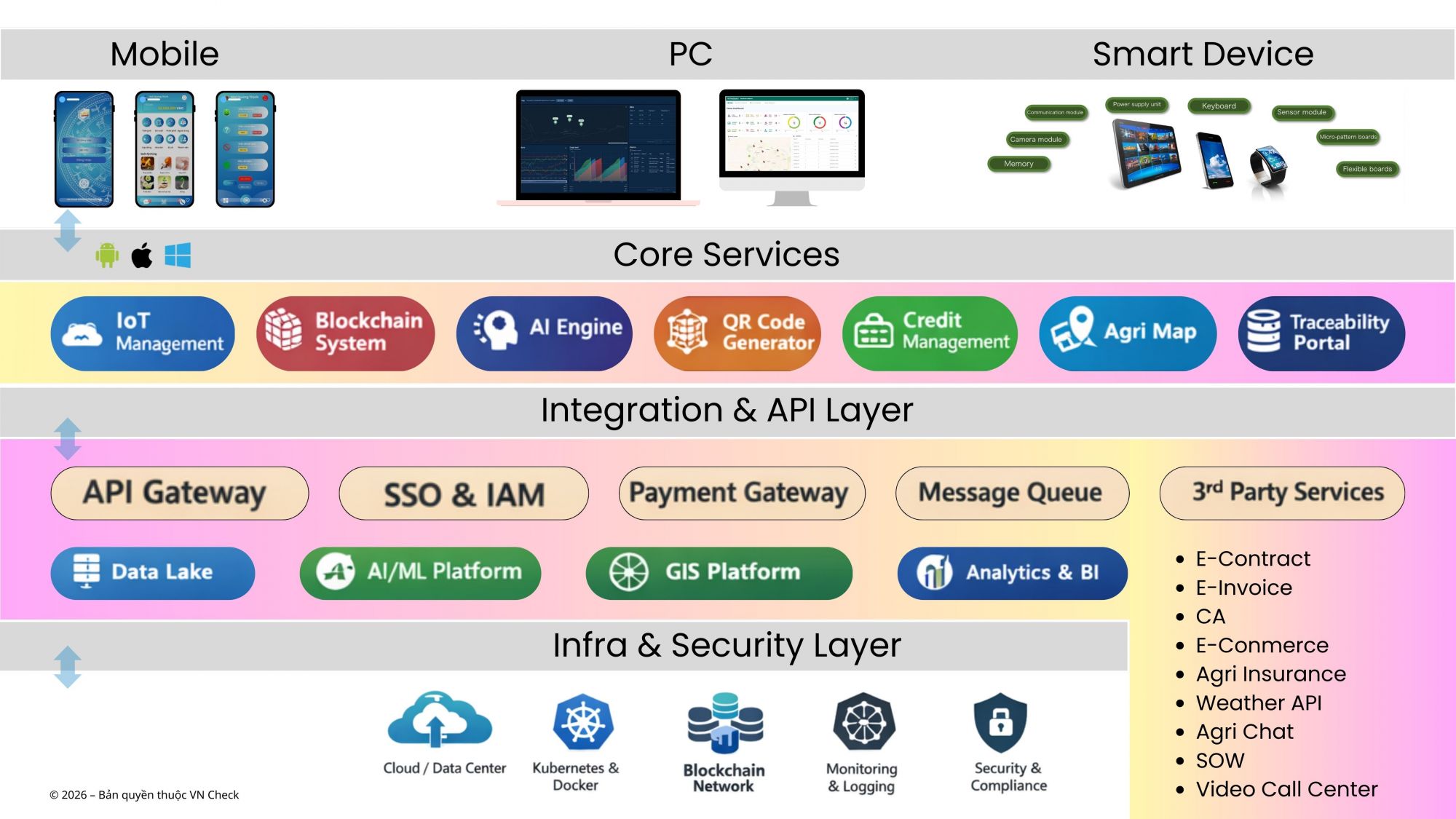 Cũng tại chương trình lần này, VN Check chính thức ra mắt kế hoạch phát triển nền tảng IoT mã nguồn mở. Đây là công cụ hữu ích, quan trọng để bước đến phát triển nền nông nghiệp số, nông nghiệp thông minh. Nơi mà ở đó chúng ta sẽ minh bạch hoàn toàn được nguồn gốc xuất sứ của nông sản, giúp nông sản Việt Nam tự tin đưa ra ngoài biên giới. Phần trình bày được Kỹ sư trưởng Nguyễn Văn Duẩn thực hiện với những phân tích dễ hiểu giúp cho đối tác và khách hàng có được cái nhìn cụ thể nhất, tổng quan nhất về mô hình IoT mà VN Check sẽ triển khai.