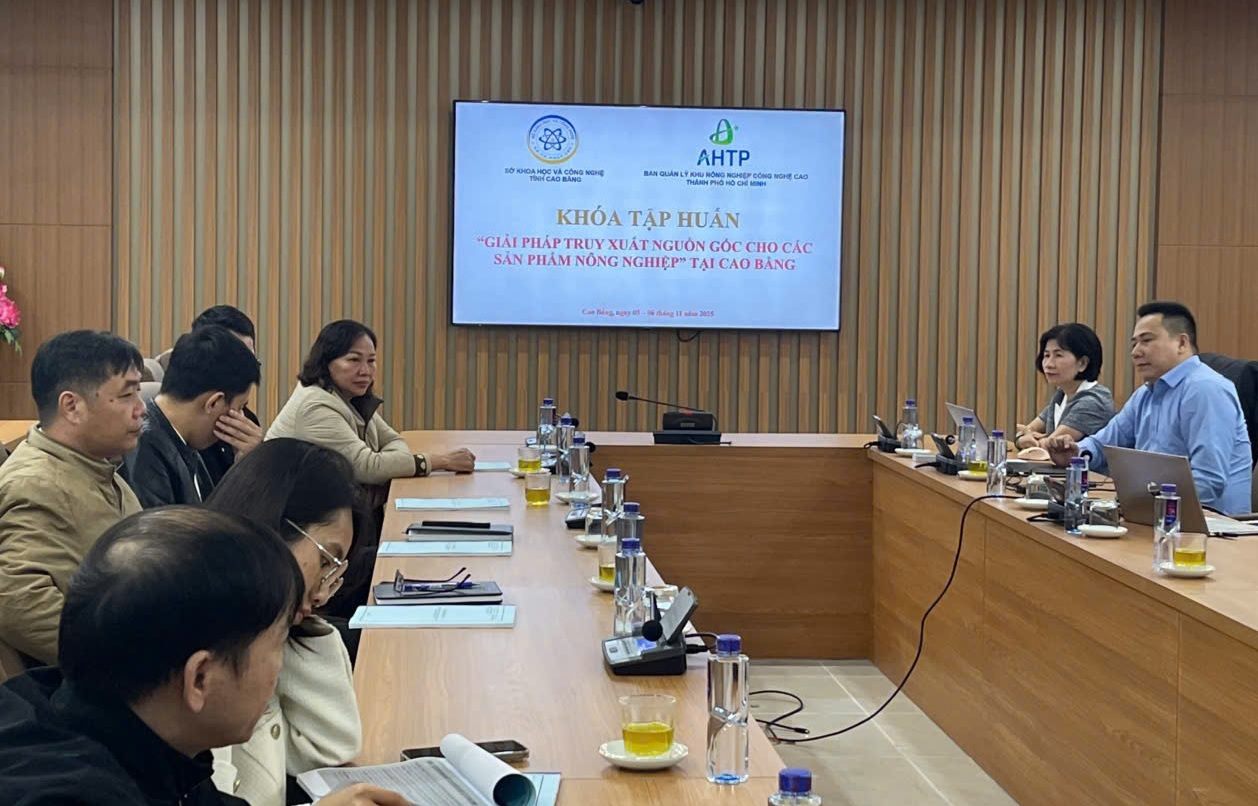 Trong hai ngày 05 và 06 tháng 11 năm 2025, Công ty Cổ phần Công nghệ và Số hoá Toàn cầu Sở Khoa học và Công nghệ (KH&CN) tỉnh Cao Bằng phối hợp với Trung tâm Ươm tạo Doanh nghiệp Nông nghiệp công nghệ cao trực thuộc Ban Quản lý Khu Nông nghiệp công nghệ cao Thành phố Hồ Chí Minh tổ chức Khóa tập huấn “Giải pháp truy xuất nguồn gốc cho các sản phẩm nông nghiệp tại Cao Bằng”.